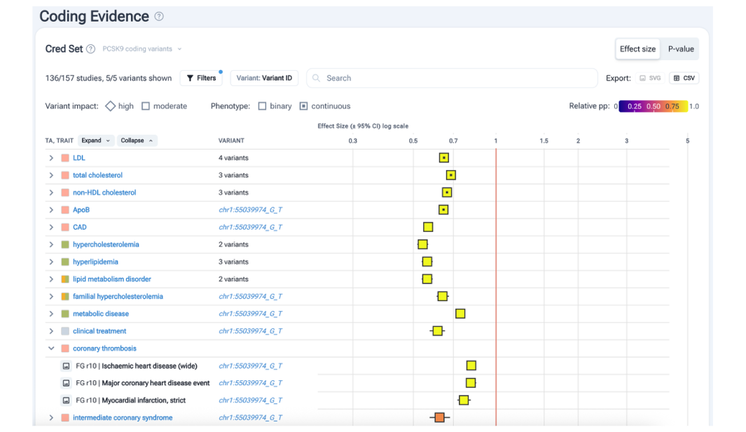 Easily query by trait or diseases to get high-level overview of all genetically-associated targets. Rank prospective targets by the strength of genetic evidence.